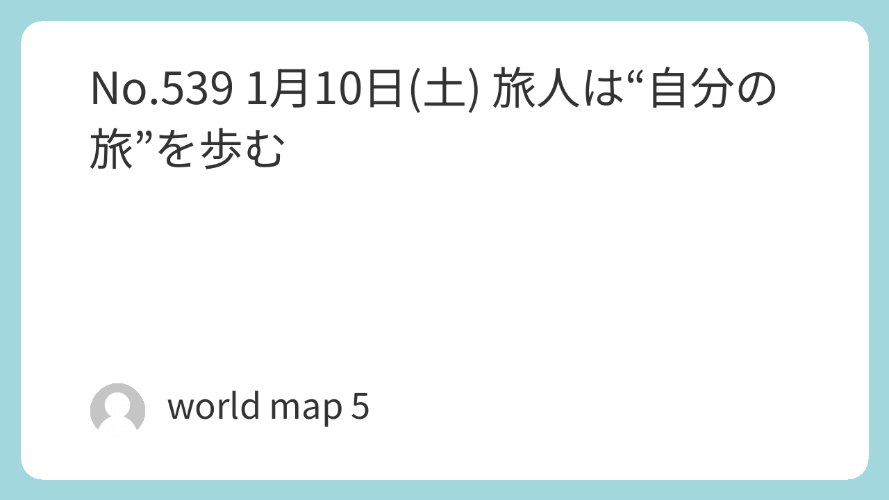 No.539 1月10日(土) 旅人は“自分の旅”を歩む